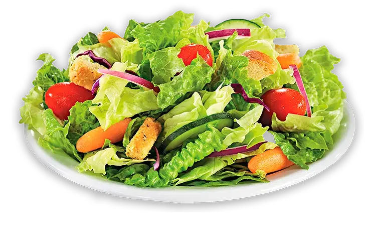 Iceberg lettuce, tomatoes, peppers, onions, croutons, and your