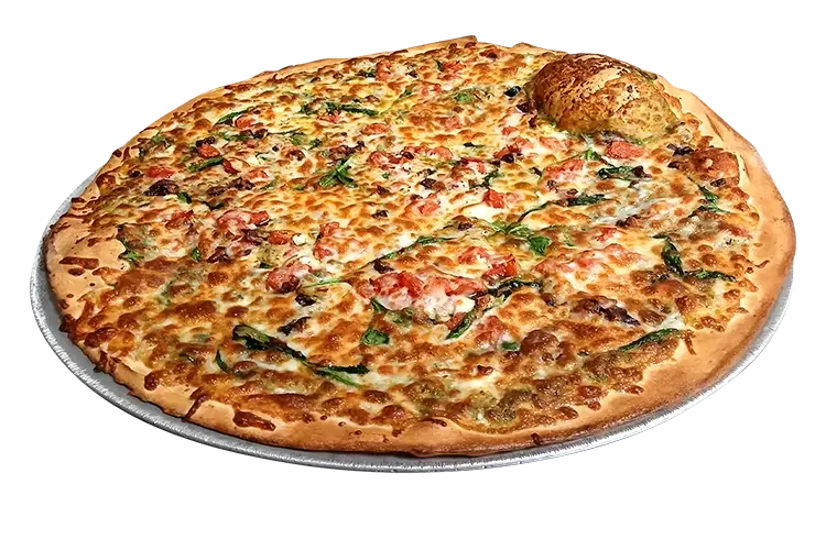 Roasted garlic and pesto base, spinach, tomato, Kalamata olives, artichokes, feta, and mozzarella